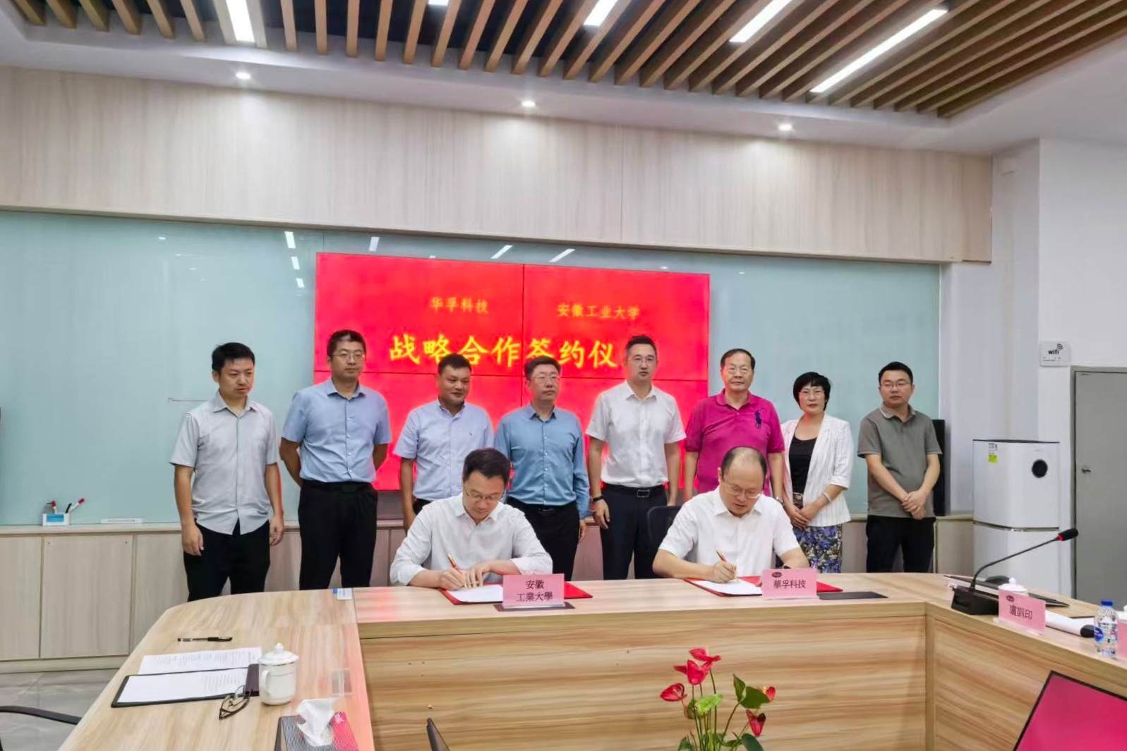 9月26日,我校与华孚精密科技(马鞍山)有限公司战略合作协议签约暨产学研合作基地揭牌仪式在华孚科技举行。校党委常委、副校长张世宏,华孚科技总经理张诚,马鞍山市委统战部副部长、台办主任(兼)王林,市经开区党工委委员、管委会副主任邰寅,马鞍山市铸造协会秘书长杨道生出席。华孚科技先进制造研究院、数智自联研究院、华越学院等部门负责人以及我校科研处、冶金工程学院负责人参加。